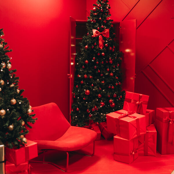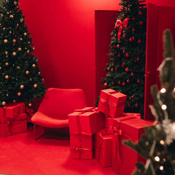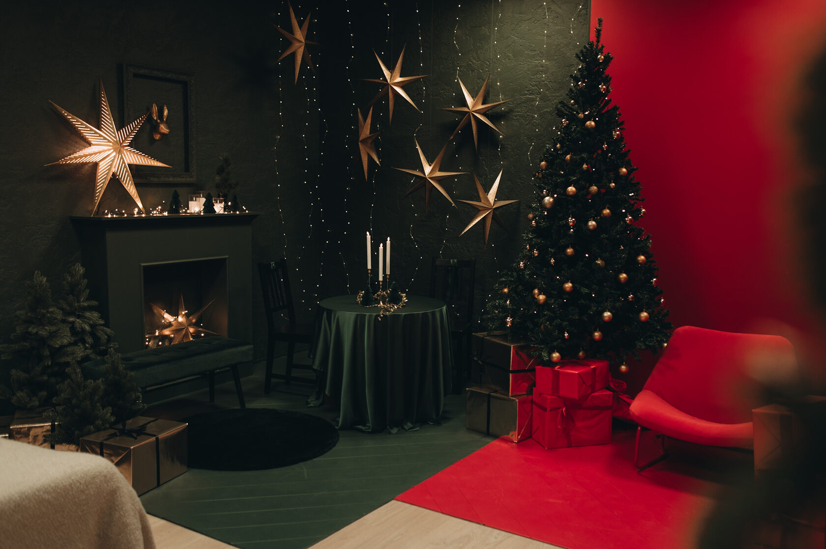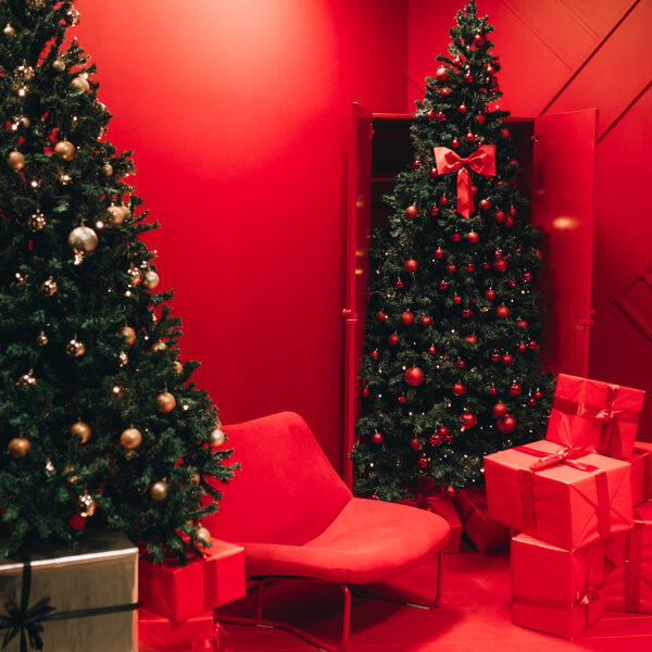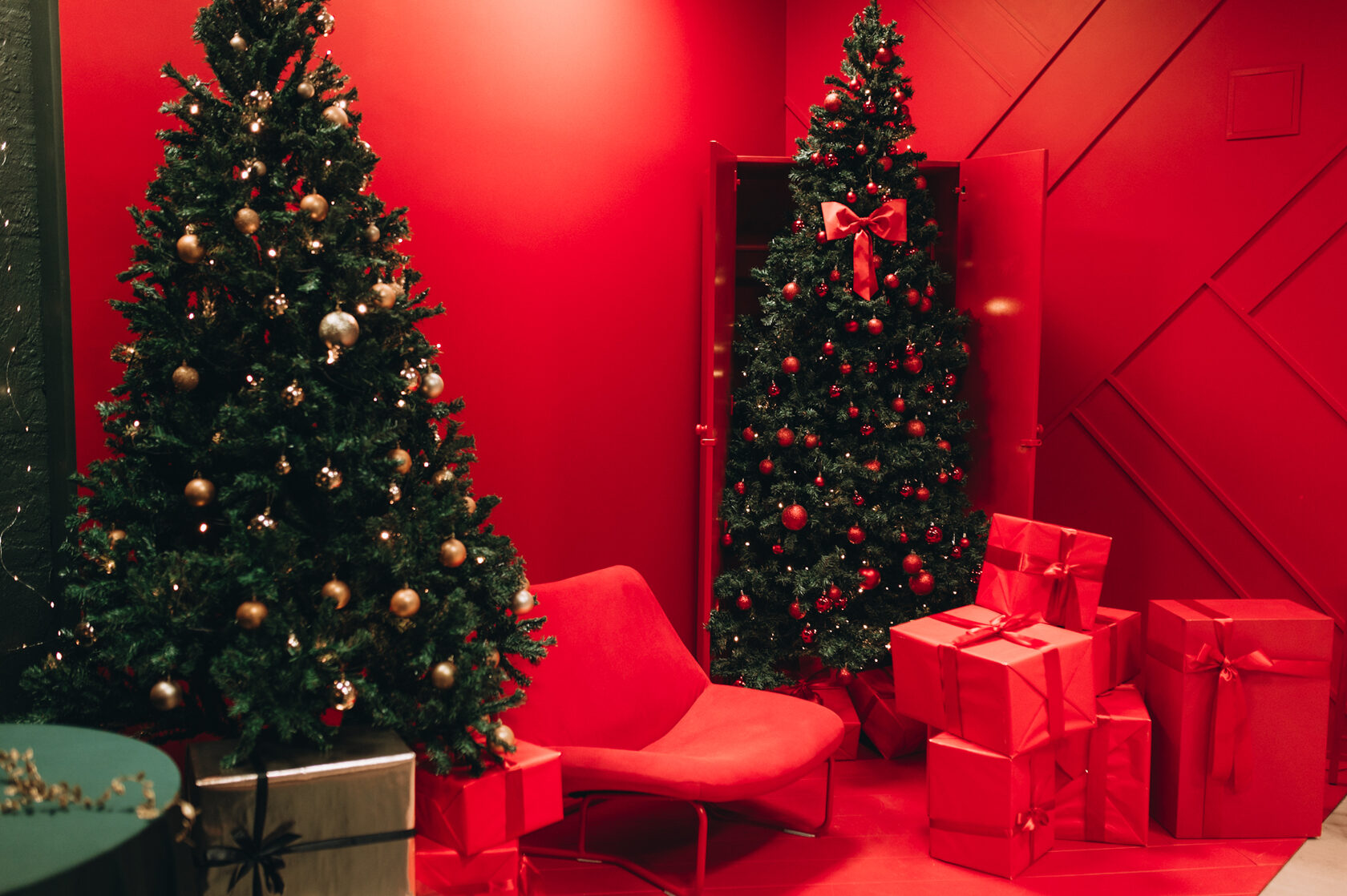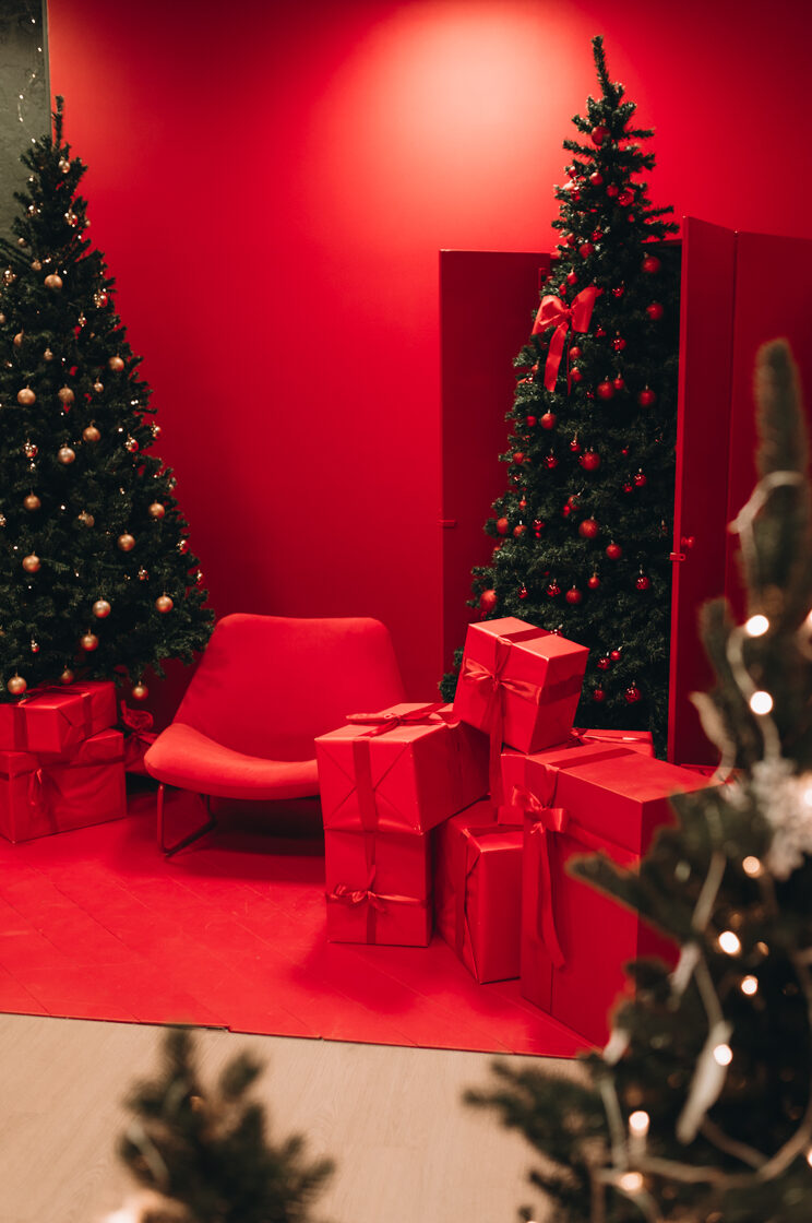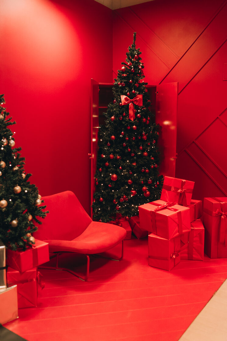 - Sarkanā zona ar skapi, dāvanām un eglēm