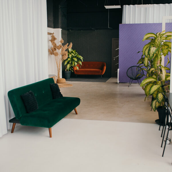 120m2 plaša studija: 2 telpas, 10+ foto zonas un daudz dabīgās gaismas.
